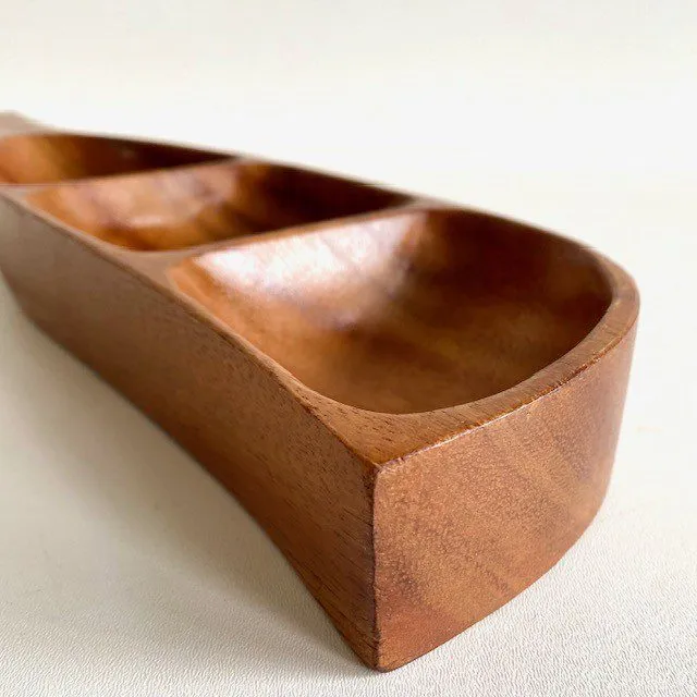 Prachtige teak houten vintage hapjesschaal schaal met vakjes.