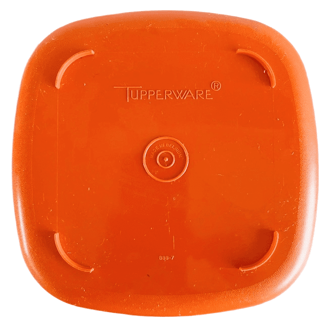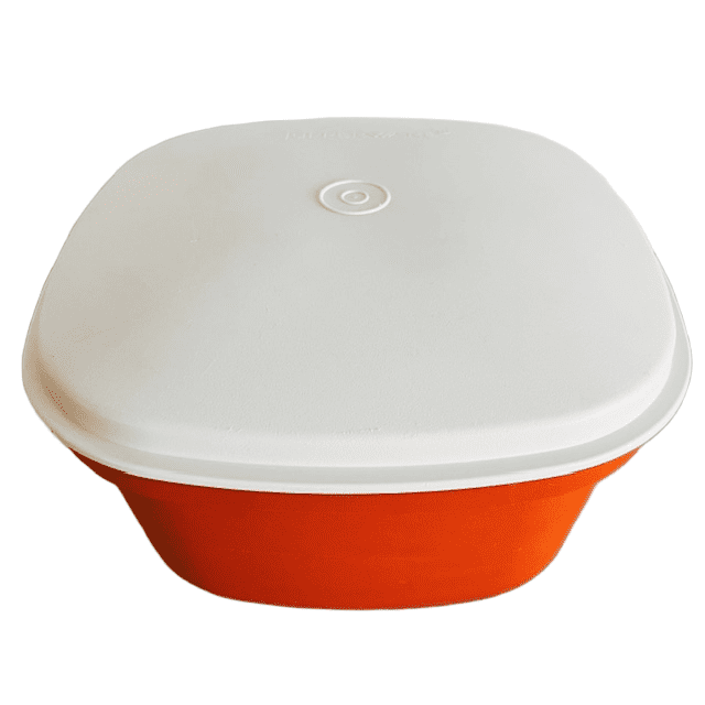 Deze Tupperware container in zeer goede vintage staat en 23 cm lang, 23 cm breed en 15 cm hoog.