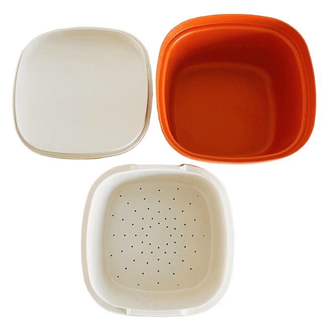 Vintage Tupperware serveerwonder 888-16 3-delige schaal in oranje crème uit de jaren 80.