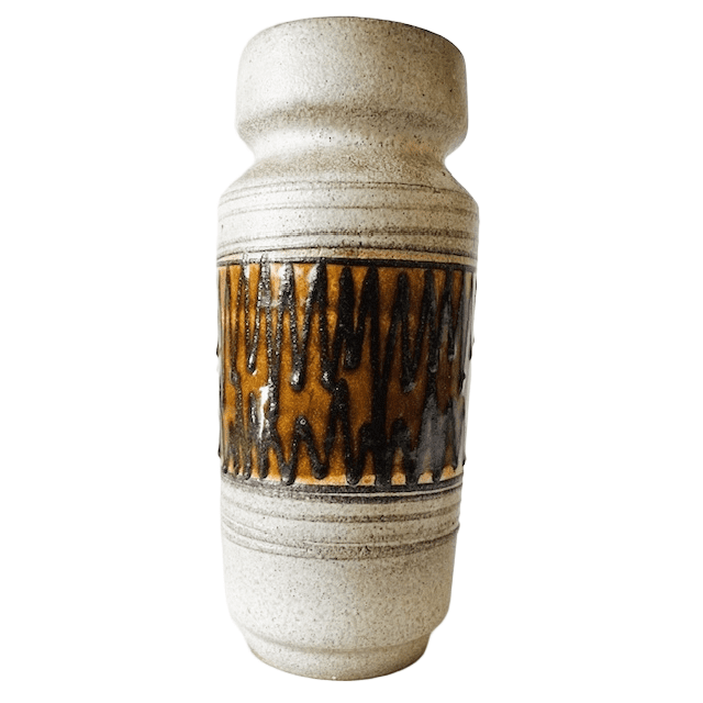 Toffe beige en bruin vintage West-Germany vaas van VEB Haldensleben, Oost-Duitsland, DDR uit de jaren 60. De vaas is 24,5 cm hoog en heeft een doorsnede van 10 cm. De vaas is in goede vintage staat.
